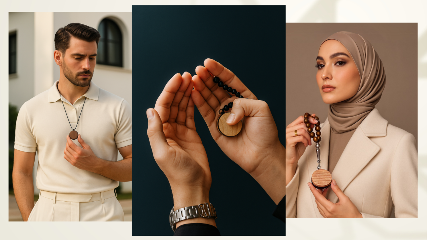 Qiblasense is beautifully crafted device, worn as a discreet necklace or held as a tasbih, that gently guides you toward Makkah with a quiet pulse, connecting you to your faith in the most subtle, personal way.