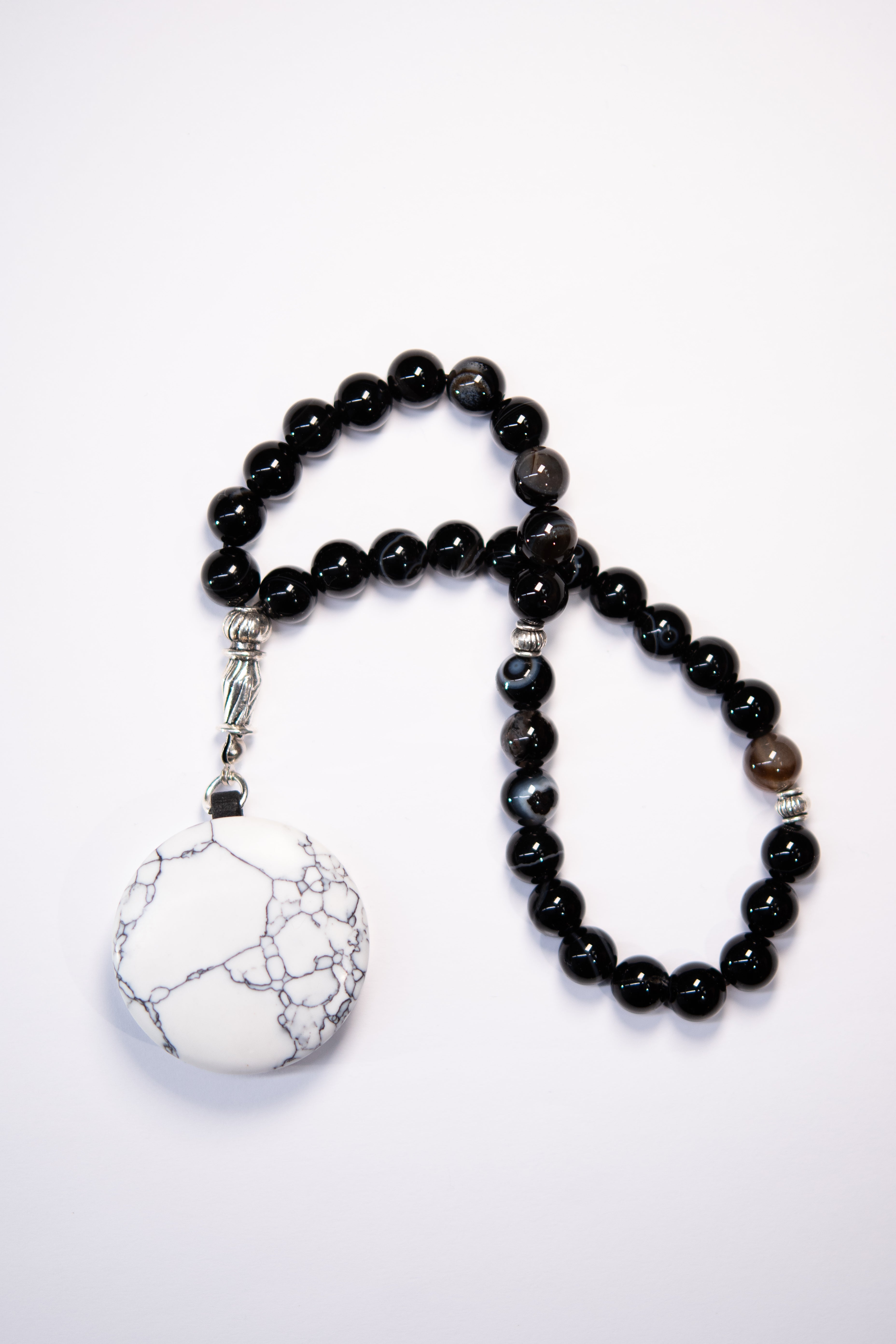لكل قطعة تصميمها الفريد والشخصي. اختر من بين خرزات سوبهاس الزرقاء أو السوداء أو المصنوعة من حجر عين النمر، والمكونة من 33 خرزة.